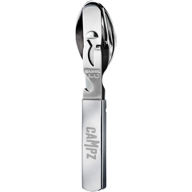 Ces couverts de poche reprennent le design original des couverts classiques de l’armée allemande. Éprouvés et dotés d’un imprimé CAMPZ très cool. Le modèle à quatre pièces comprend un couteau, une fourchette et une cuillère, ainsi qu’un ouvre-boîte et un ouvre-bouteille, de sorte que vous avez tout ce dont vous avez besoin pour un repas sur le pouce. Ensuite, chaque pièce peut être facilement nettoyée séparément et réassemblée pour gagner de la place. Fabriqués en acier inoxydable, ces couverts sont très stables et ne rouillent pas, vous pouvez donc toujours compter sur eux.