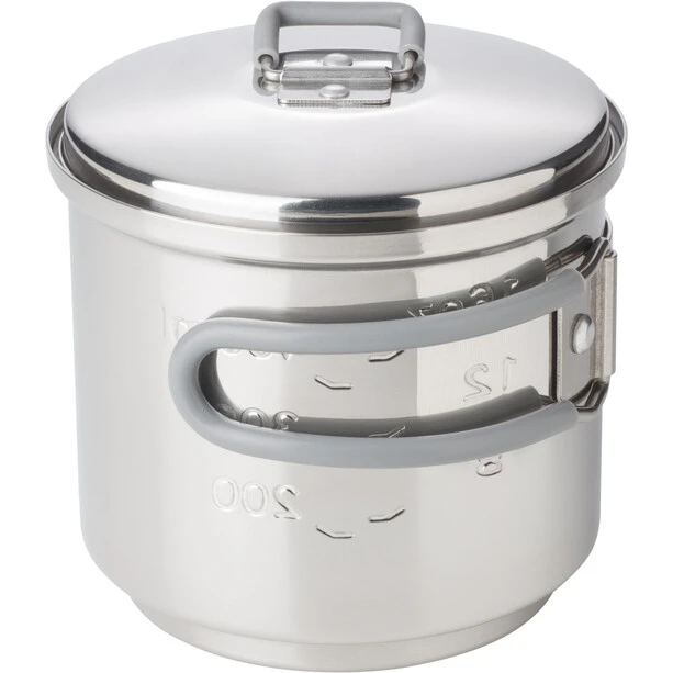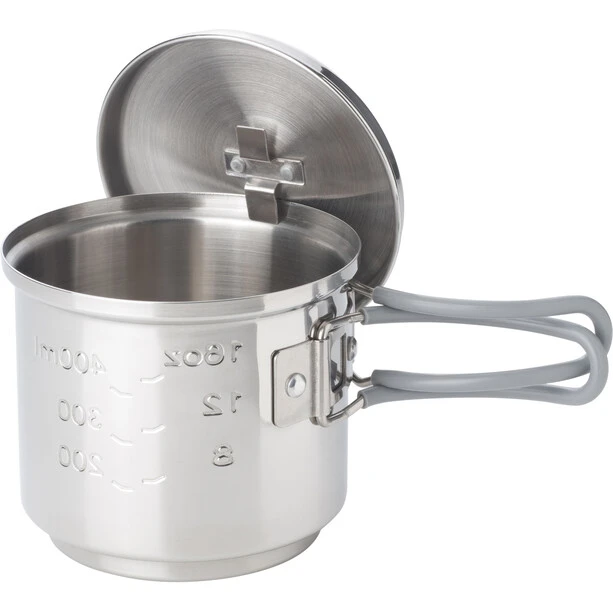 Lorsque la taille de l’emballage est importante, cet ensemble de cuisson compact et empilable est le choix idéal. Le pot, en acier inoxydable de haute qualité, contient environ 585 ml et est équipé d’un afficheur de volume. Le support est fabriqué en aluminium extrêmement léger et peut être transporté dans le pot pour gagner de la place. Particulièrement pratique : La suspension du couvercle ainsi que les poignées rabattables peu encombrantes sont en acier inoxydable. Livré dans un sac en filet pratique et peut être cuit avec 14 g de pastilles de combustible sec Esbit.