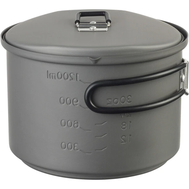 Large volume – low weight: With only about 466g and a capacity of up to 1500ml, this spirit cooking set made of hard anodized aluminum is a pleasant companion especially for longer trips.