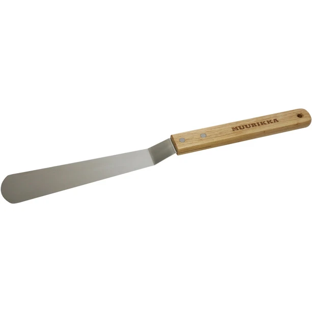 Spatule étroite en acier avec manche en bois. Les aliments peuvent être facilement retournés dans la poêle à l’aide d’une spatule étroite, qui convient par exemple à la cuisson des légumes. Par exemple, elle est aussi bonne pour retourner les crêpes !