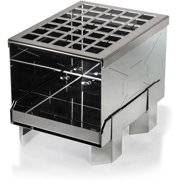 Ces quatre pieds soulèvent la boîte à feu Petromax fb1 de près de 4 cm. La distance entre la boîte à feu et le sol optimise l’apport d’air et en même temps le sol reste indemne. Les pieds en acier inoxydable sont aussi faciles à emporter que la boîte à feu elle-même, car les pieds peuvent être rangés sans problème dans la boîte à feu pliée.