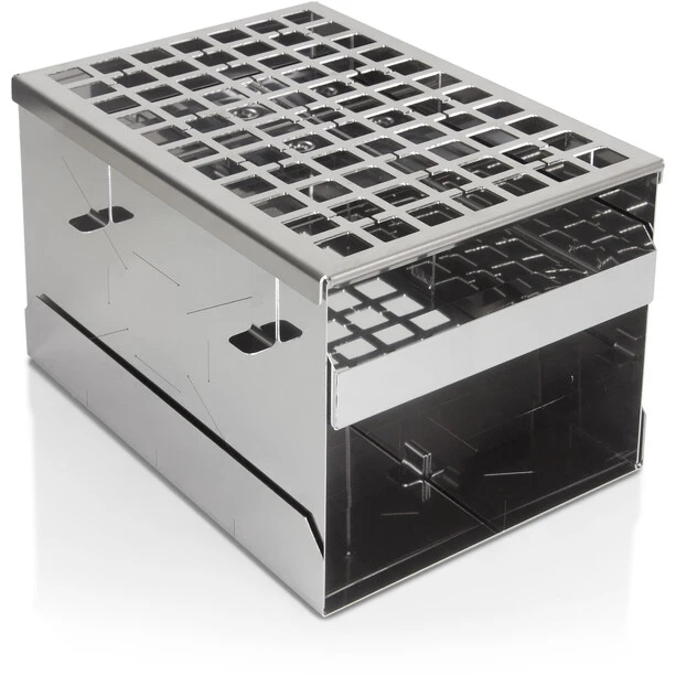 Les supports à double angle transforment la boîte à feu en four ! Le support de four en acier inoxydable soulève la cuvette de la boîte à feu pour que le pain et les petits pains puissent être cuits en dessous. La hauteur de cuisson et donc l’espace de cuisson varient en fonction de la façon dont le support est accroché : Les petits pains sont cuits dans la boîte à feu, aussi croustillants qu’un pain.