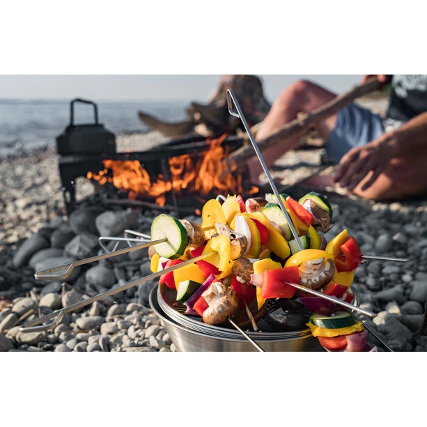 Ces brochettes sont parfaites pour griller sur un feu ouvert ou dans le gril Kuchoma. La forme plate et la pointe pointue permettent de préparer facilement les plats que l’on veut sans tomber en tournant.
