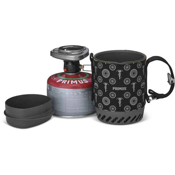 This compact and lightweight trekking cooker for 1-2 people stands for the most efficient heating, easy handling and uncomplicated packing. The 0.5 l pot of the Lite Plus cooker set by PRIMUS can be attached to the burner and closed with a simple twist. The piezo igniter ignites the cooker with a simple push of a button, bringing water to the boil quickly. The laminar flow burner of the Lite Plus Stove Set by PRIMUS is extremely compact and boils 0.5 litres of water in less than three minutes with its 1,500 W flame – for a quiet cooking experience. Simply use the spout of the included pot or use the pot support clips to use any pots or pans. You can also remove the handle and use the included hanging bracket while sheltering from the rain under a tree. By attaching it to the 100g gas cartridge, the cooker stores easily in the hard-anodised aluminium pot with cork insulation and sheathing in durable G-1000 Eco Lite material to protect against burns. Combined with the coffee/tea press by PRIMUS (not included), the Lite Plus Stove Set by PRIMUS is perfect for a quick coffee break on the go.