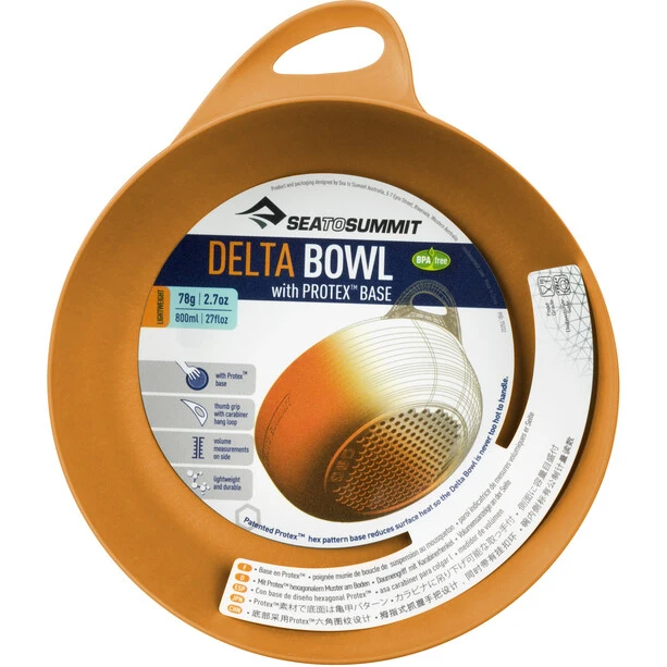 Bol ultraléger avec la base unique de l’hexagone Sea to Summit. Ce fond permet de maintenir le poids du bol à un niveau bas tout en réduisant la chaleur. La prise pour le pouce vous permet de tenir le Delta Bowl fermement en place et un mousqueton peut être accroché dans l’ouverture pour fixer le bol à vos bagages.