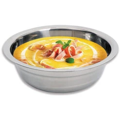 Le bol pratique en acier inoxydable avec poignée peut être utilisé aussi bien pour la préparation que pour la consommation de muesli, soupes ou ragoûts.