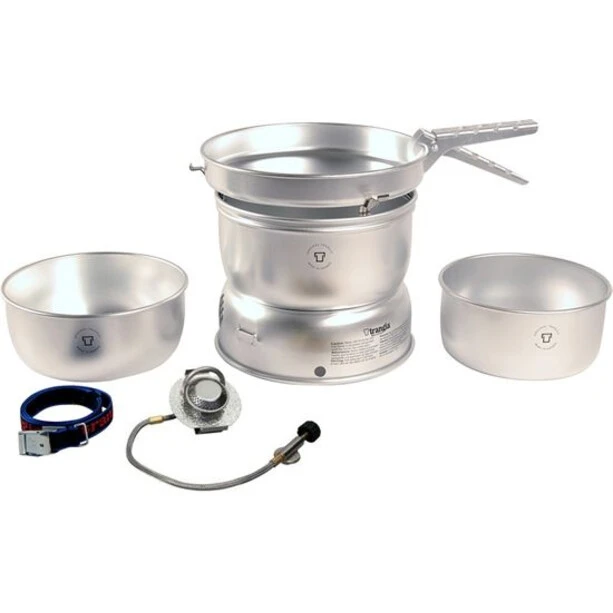 La série 25 comprend les plus grands modèles adaptés aux groupes de 3-4 personnes. Ces excellents sets familiaux se composent d’ustensiles de cuisine plus grands et d’une poêle à frire plus large. Avec les supports relevés, la cuisinière peut être utilisée avec des casseroles plus grandes de la gamme Trangia.